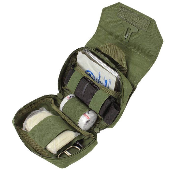 The Condor FRP was designed as a mountable personal first aid kit for soldiers and operators in the field. The loop-lined, surface buckle flap allows quick access/closure without hassle. The rip away panel allows quick transfers for emergency situations or efficient mobility between load outs.