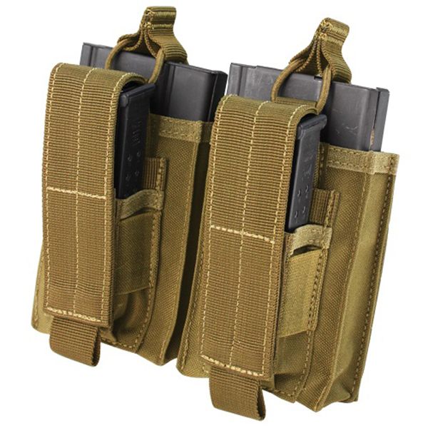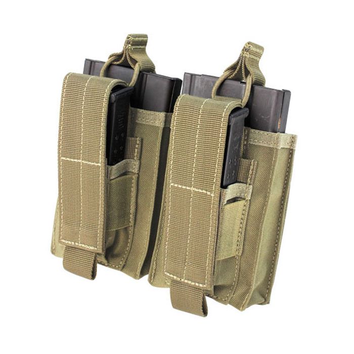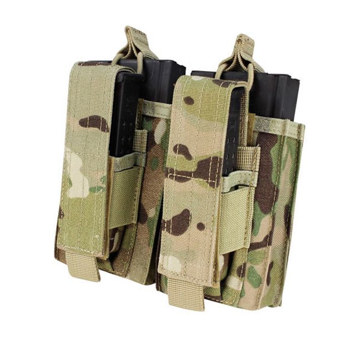 Hold rifle and pistol mags in one convenient place with the Condor Kangaroo Double Mag Pouch. This innovative pouch fits both 30rd AK mags and most pistol mags. The hook and loop closures are adjustable for higher mag retention. Measures 121 mm (4.75 inches) x 178 mm (7 inches) x 25 mm (1 inch).