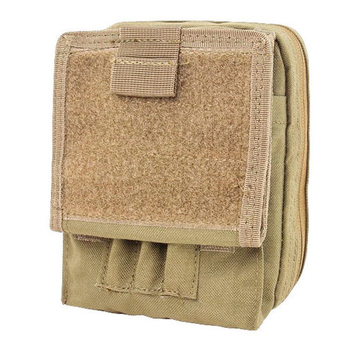The Condor Map Pouch is versatile admin type pouch. Featuring area for insignia/unit hook and loop patches in front, flip-down ID windows, mulitple slots for pens/markers and a removable vinyl map sleeve within the main compartment. Comes with two MOD Straps.