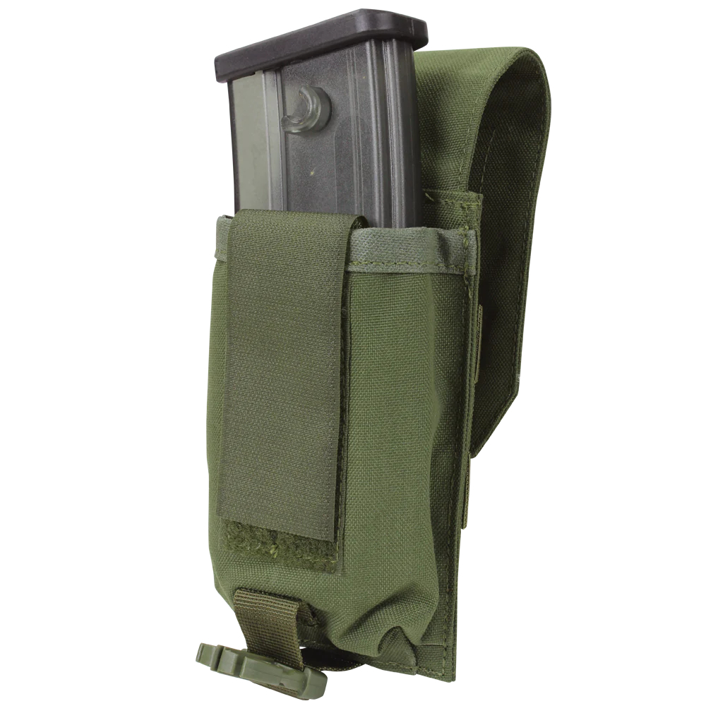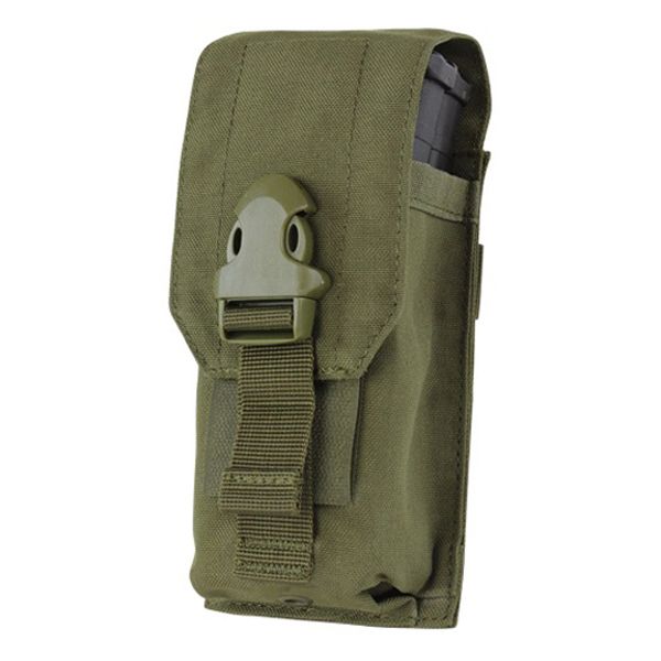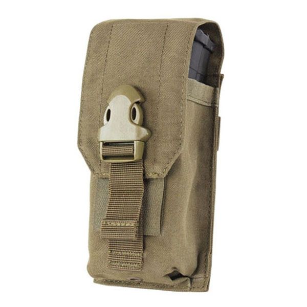 Extra magazines never go out of style, especially when they’re in this Condor Rifle Mag Pouch. Made from wear resistant nylon with reinforced stitching, this holster keeps your magazines secure in a stylish cover. The front flap affixes over the magazine with a hook/loop closure and a buckle clip. It's compatible with a MOLLE/PALS platform with its back straps.