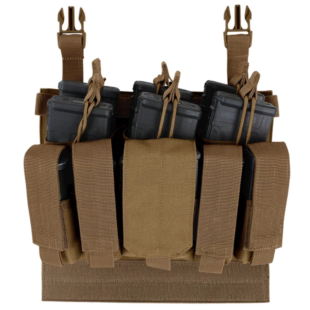 Introducing the elite Condor Vanquish Armour System Recon Mag Panel. Designed for seamless integration with the Condor Vanquish Tactical Plate Carrier, this versatile panel accommodates up to six M4 magazines and six pistol magazines. Crafted for precision and durability, the panel effortlessly attaches to the front of the Plate Carrier using the integrated hook and loop patch on the exterior of the front document pocket. For added security, it features two buckle fastenings on the shoulder straps, ensuring a snug and stable fit during rigorous maneuvers. With the Vanquish Armour System providing a plethora of customization options, this Mag Panel stands as a testament to its adaptability and functionality, offering users a convenient solution for ammunition management in the field.