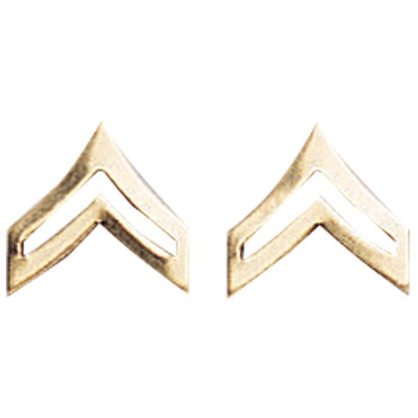 This robust metallic finish insignia features two incomplete triangles joined together by a straight line design on both sides. The Corporal Insignia is a set of two high quality pins. The Corporal Insignia is not sold by a single piece. It is a corporal style insignia. Each insignia contains a closure pin at the back for easy attaching and opening. Your shirt, coat, blazers, jackets, even your hats, belts and caps will look great with this Corporal Insignia pinned on them. These Corporal Insignias is available at affordable price.
