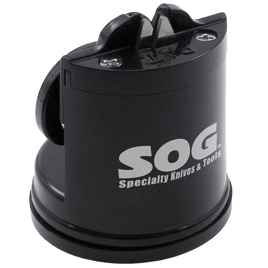 Now SOG takes the hassle out of knife sharpening with the newest generation of SOG Countertop Sharpener! Simply set the SOG Countertop Sharpener on any flat non-porous surface, activate the suction, and pull your knives through for a razor sharp edge!