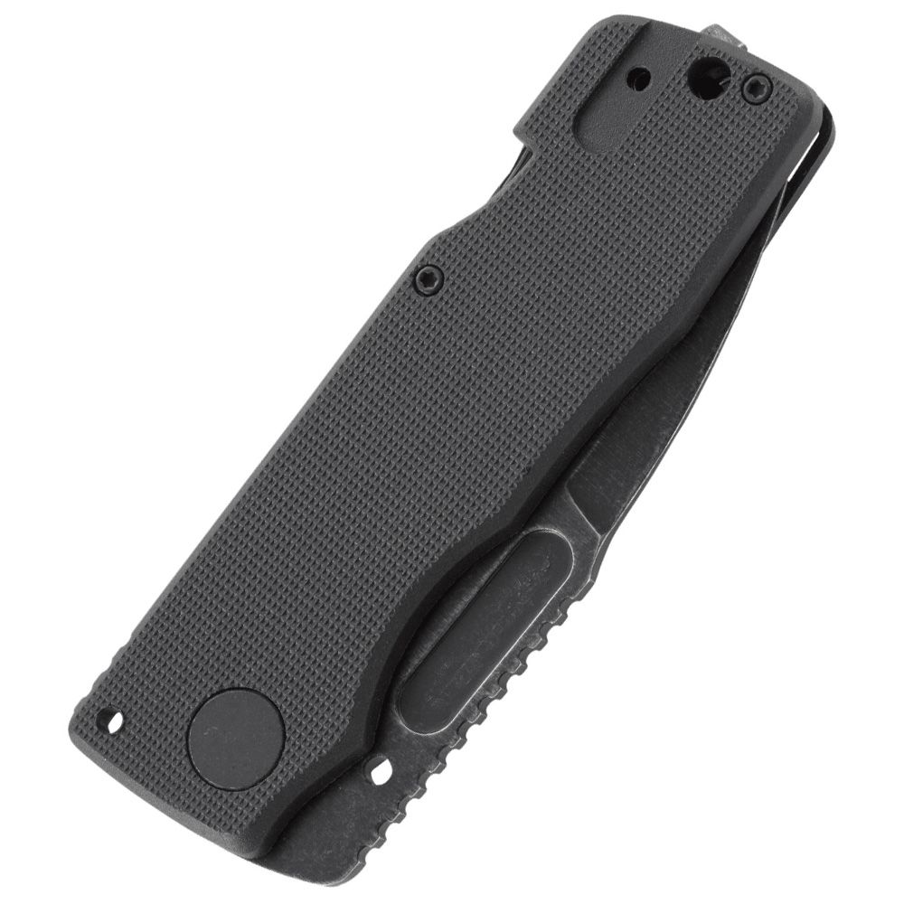 Turn Liong Mah's new folding everyday carry knife into a virtual fixed knife simply by pulling out the pin tool in the back of the handle and placing it into the blade slot. The black stonewashed blade will do the rest for the years of journeys to come.
