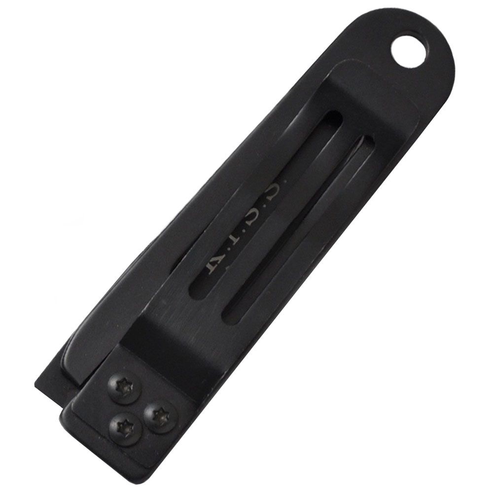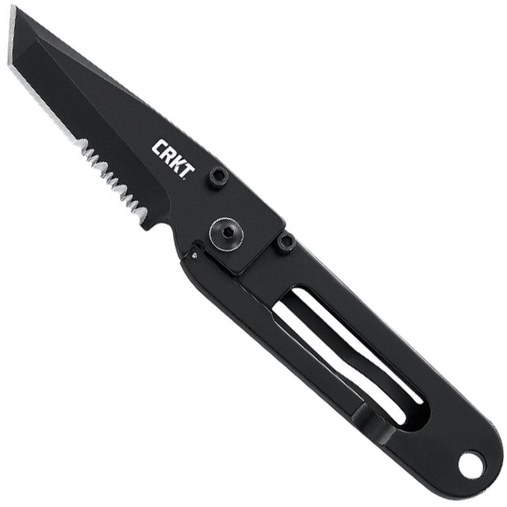 The K.I.S.S.® in The Dark blade shape is Tanto-inspired—Chisel-Point grind on the front and flat on the backside—so that when the blade is closed onto its handle/frame, the precision fit effectively "seals" the cutting edge to the frame, even though it's exposed. Both Razor-Sharp and Combined Razor-Sharp and Triple-Point™ Serrated edge grinds are available. Both blade and frame are 3CR13 stainless steel in a fine bead-blast finish.
