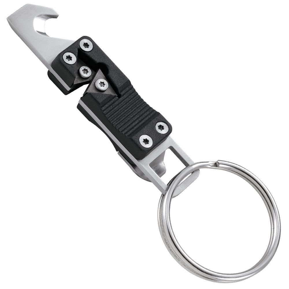 This handy tool also features a flathead screwdriver, small channel blade/cutter, and bottle opener. The Stokes Keychain Sharpener also comes with a split-ring for easy carry attachment.