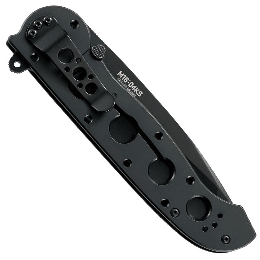 The late Kit Carson designed this and many of his other groundbreaking knives in his shop in Vine Grove, Kentucky. Kit’s lasting legacy comes from his influence on the knife industry—he’s known for popularizing the flipper which is now a household component. Beyond that, he’s also remembered for his esteemed ranking as a Master Sergeant and his high-profile membership in the Cutlery Hall of Fame. The M16-04KS keeps all we love of Kit’s original tactically-inspired everyday carry folding knife and adds a substantial tanto blade complete with a durable black oxide finish. With its hardy frame lock, it’s securely held in place in the midst of whatever job you put in front of it while the stainless steel handle bored with five holes keeps clean and light.