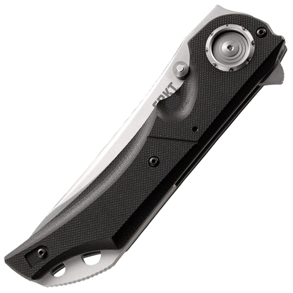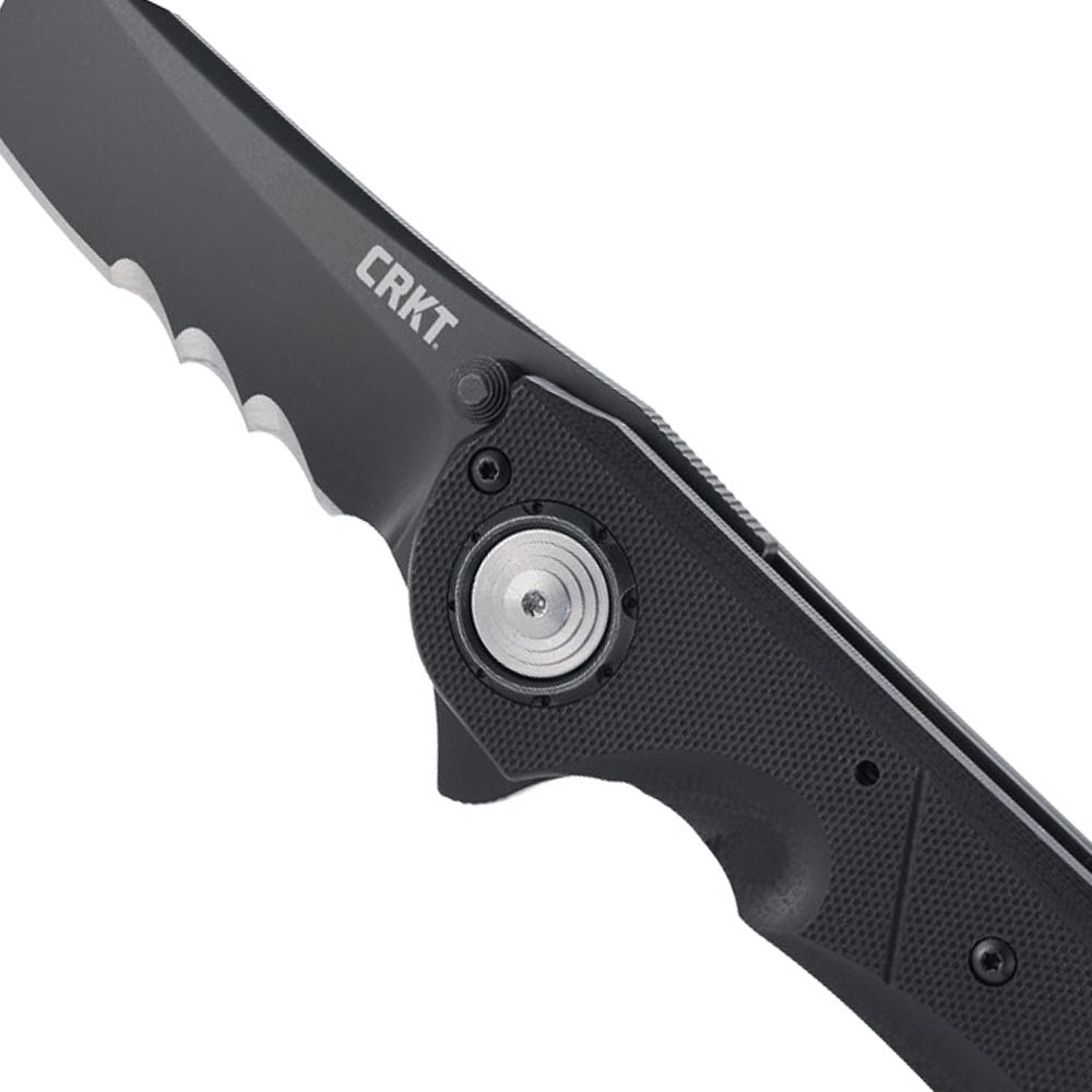 Steel bolts interlock with the blade when it’s deployed to yield outrageous strength. A prominent button sits at the pivot point for simple, intuitive disengagement without fingers crossing the path of the blade.