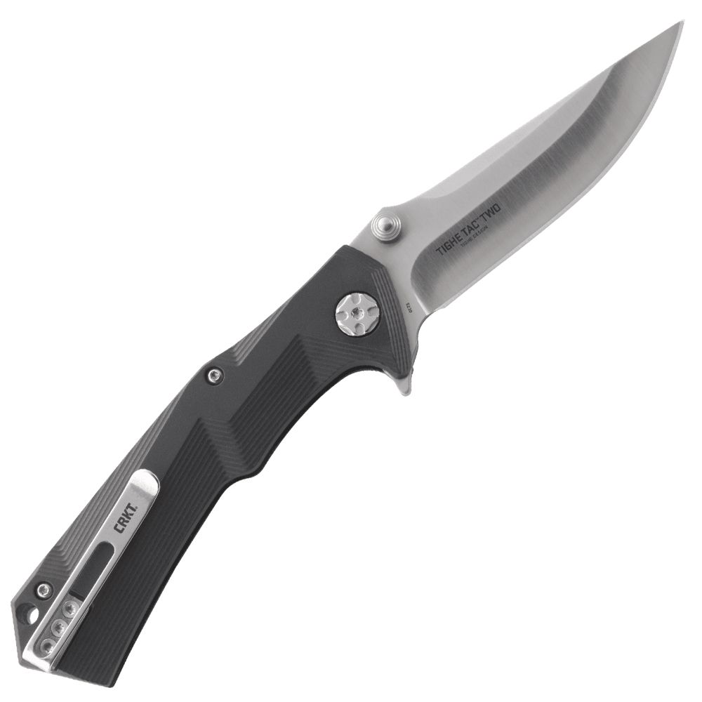The CRKT Tighe Tac Two Tanto Knife is designed to turn heads. With a lightning-fast flipper and an ambidextrous button lock, the blade swings out and locks back into the glass-reinforced nylon handle before you can even say its full name. When it does slow down though, the Tighe is as beautiful in design as it is fast.