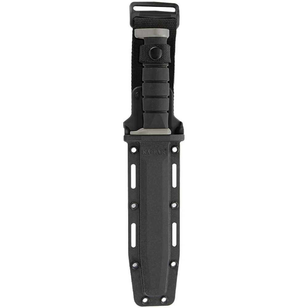 The D2 Extreme Straight Edge measures 12" overall and has a 7" blade. The steel is D2 and the blade is non-serrated, though the knife is in the same family as the 1281/1282/1282 D2 Extreme Knives. The handle is Black Kraton G. The 1292 is marked "KA-BAR OLEAN NY" and "USA" and comes with a hard plastic, MOLLE compatible sheath. The KA-BAR 1292 D2 Extreme Straight Edge is proudly made in Olean, NY.