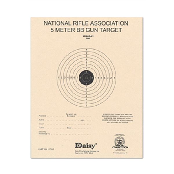 Whether you’re practicing to win a National Championship at the Daisy National BB gun Championship Match or just improving your marksmanship, these Official NRA 5-Meter BB Targets will get you there. 50 targets per pack.