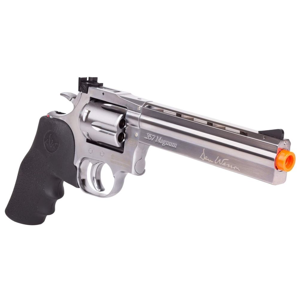 Not a single detail is spared in the design of the Dan Wesson 715 CO2 Airsoft Revolver, making it one of the finest airsoft guns on the market. Just like the real steel version, this full metal revolver has the same forward cylinder latch and clockwise rotation as the real steel version, Hogue imitation rubber grip design, and engraved Dan Wesson markings. A speed loader is included for quick and painless reloading. US version comes with required orange tip.