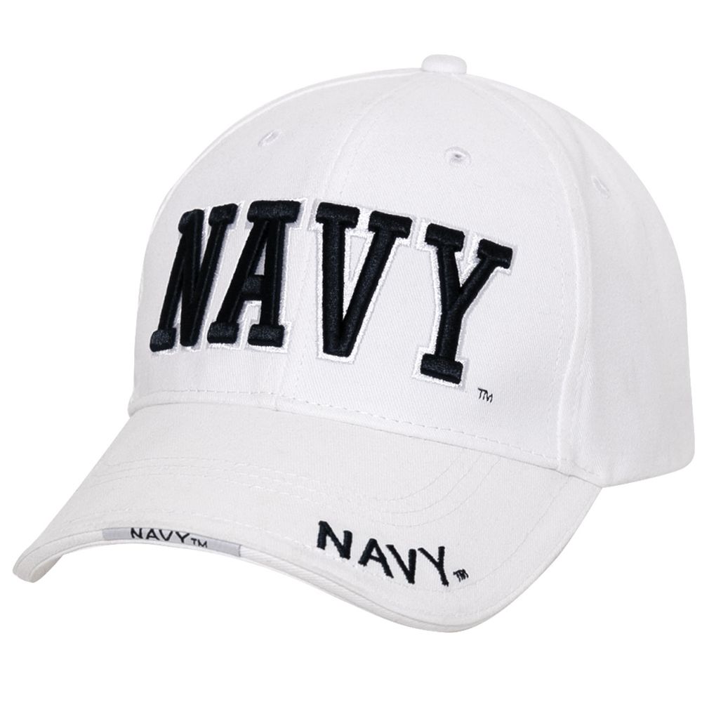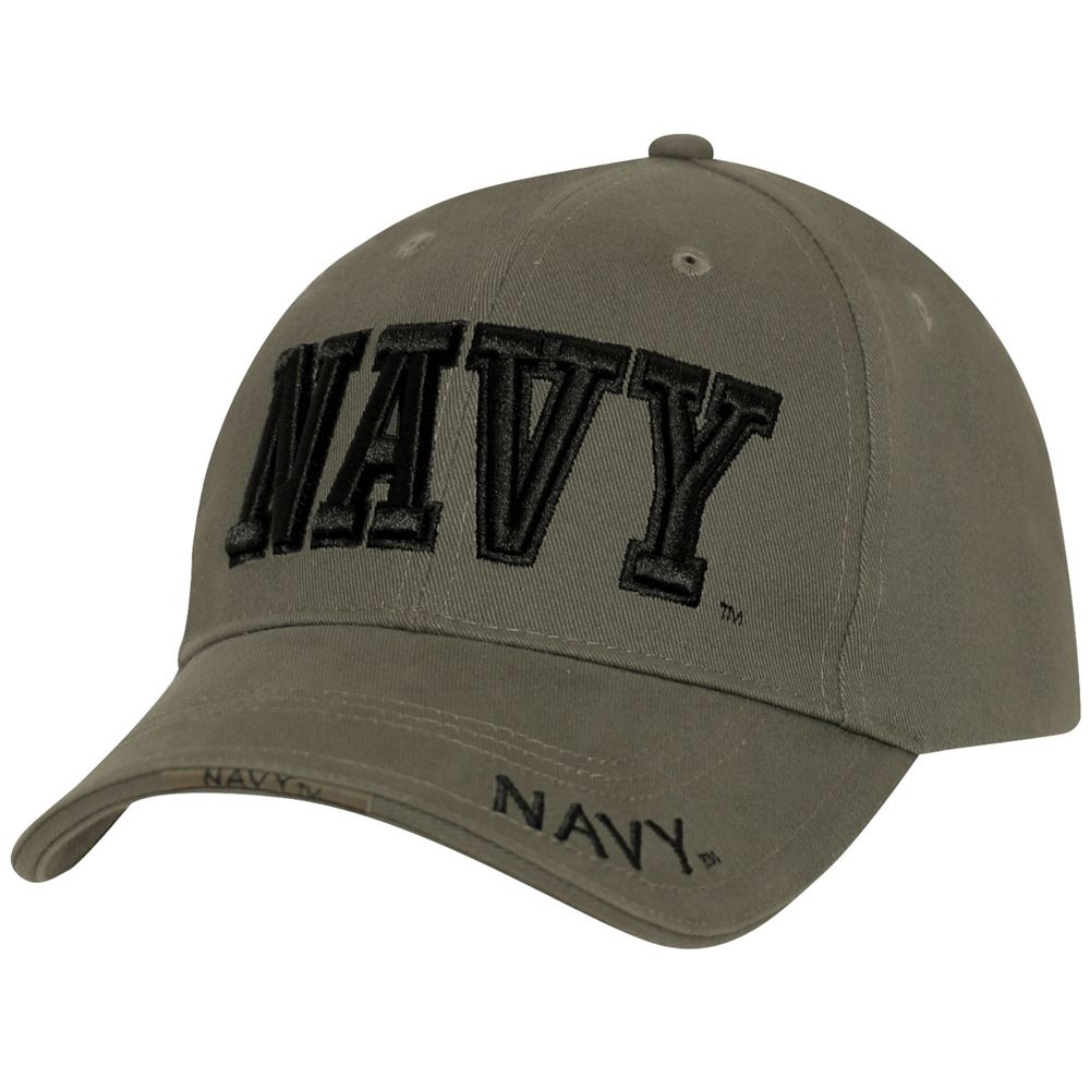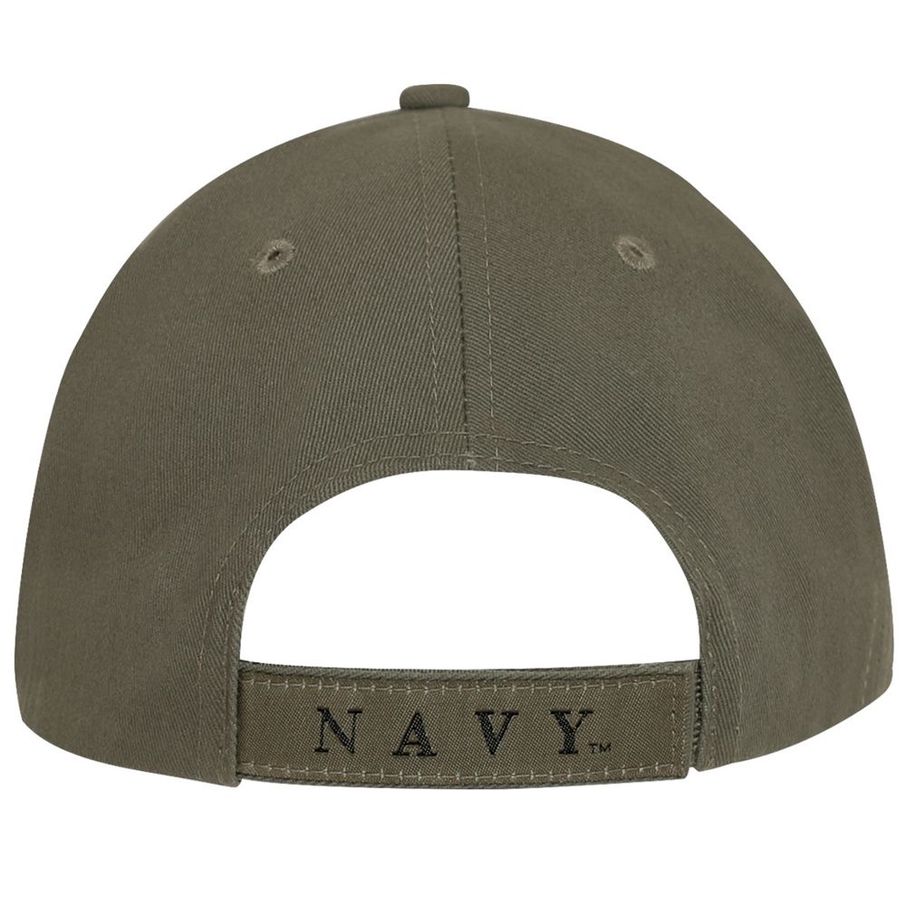 Deluxe Navy Low Profile Cap Insignia Cap Features A 100% Brushed Cotton Twill With Raised 3-D Embroidered "Navy" Text On The Front Panel & Brim. The Cap Features A Sandwich Bill & Back Strap Insignia With Adjustable Hook & Loop Closure.