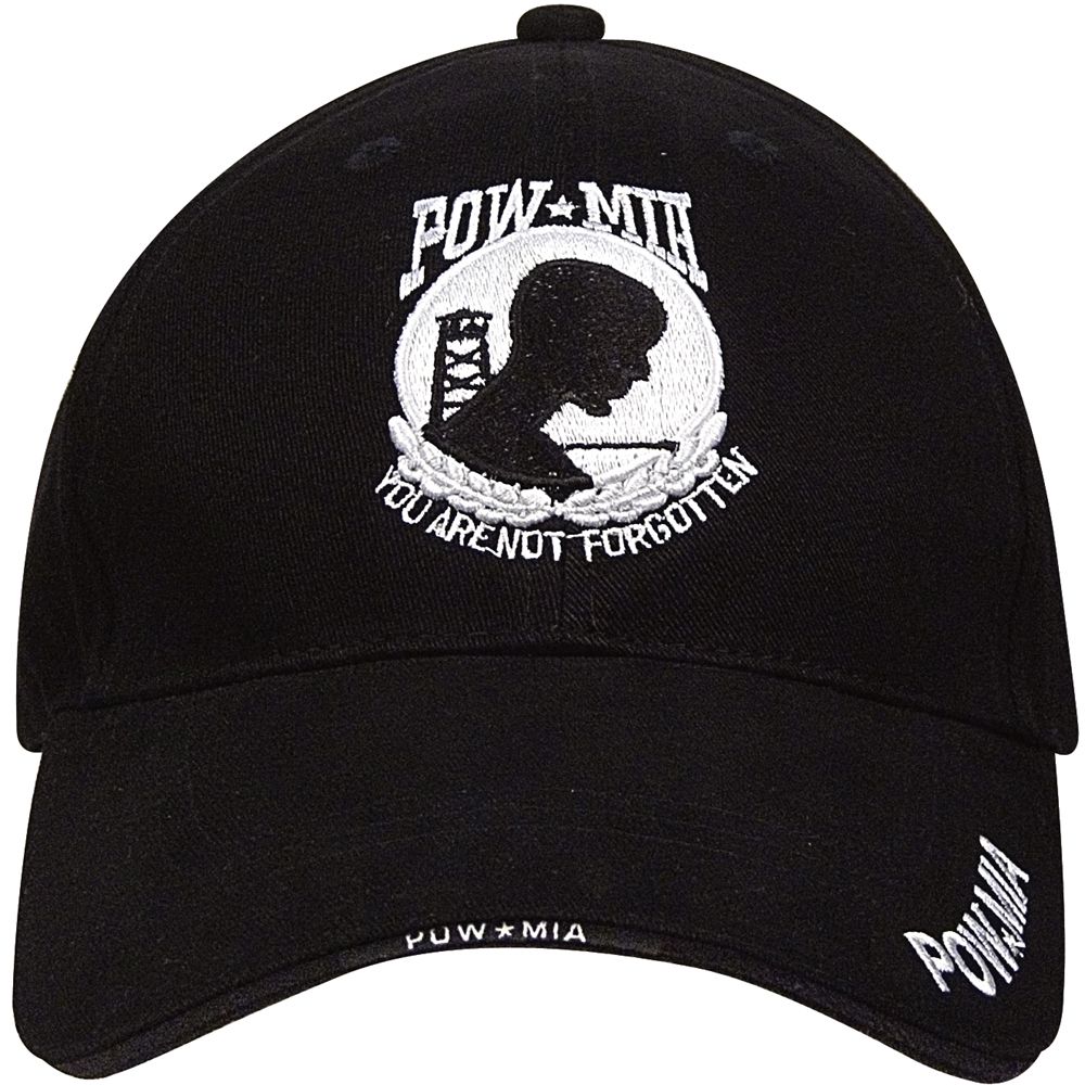 Raised POW / MIA Logo , Sandwich Brim POW / MIA Printed On Closure Front Panel w/ POW / MIA Log , Raised Embroidery Upper Brim w/ POW / MIA Direct Embroidery , 100% Brushed Cotton Twill.