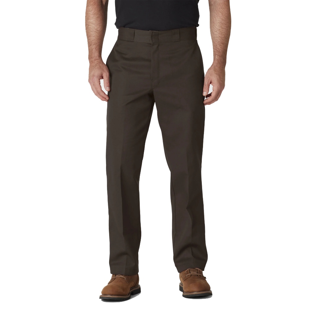 For an excellent pair of pants for everyday work, look no further than the heavy-duty, sharp-looking Dickies Men's 874 Traditional Work Pants. With its flat front and classic fit, you'll be comfortable all day long and the distinctive tunnel belt loops will provide that unique Dickies style. Taking care of these pants is a piece of cake too. A Scotchguard stain release finish will keep unsightly stains off and the permanent crease means that these pants will never need to be ironed. Made with tough, 8.5-ounce, 65% polyester, and 35% cotton twill fabric, these black pants will be there for you time and time again and the lockstitch hem simply holds them together with durability and strength.