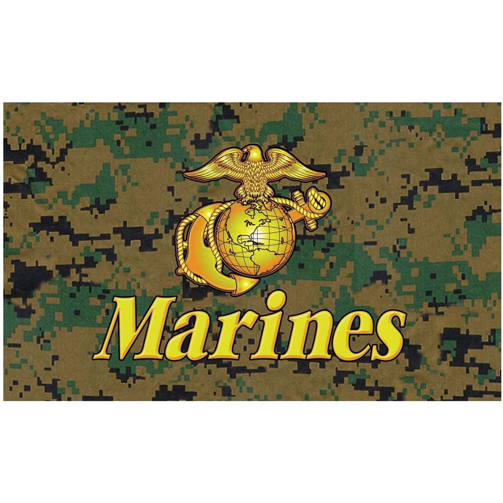 The Woodland Digital Marines Flag 3 Inch X 5 Inch is an officially licensed flag that belongs to the United States Marines. This rectangle shaped flag has a length of 3 inches and a breadth of 5 inches. It is available in camouflage background color. The official emblem of the United States Marine is positioned in the centre and is printed in golden yellow color; it includes the traditional globe and anchor with a hawk design. Just below the logo “Marines” is printed in equally bright yellow. Each sturdy polyester flag is individually packed in polythene bags.