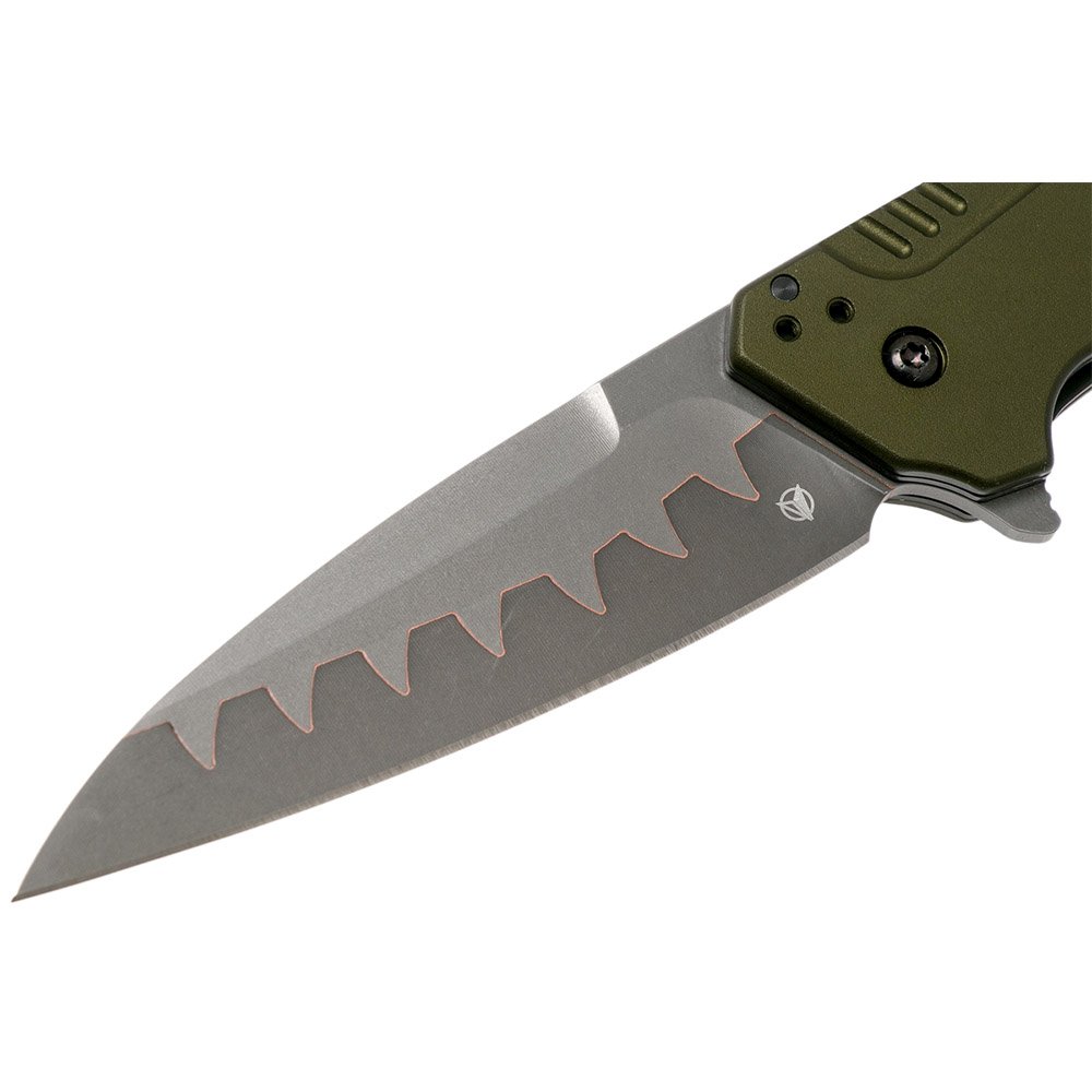 The Dividend is more striking than ever with its new Composite Blade and machined and anodized aluminum handle. Kershaw’s proprietary Composite Blade Technology joins two steels in one blade. In this case, CPM D2 and Bohler N690. We put the Bohler N690 on the blade upper to take advantage of its corrosion resistance and exceptional hardness. We put the D2 on the cutting edge to take advantage of its wear resistance, toughness, and excellent edge retention. Then we permanently joined them in a “toothlike” pattern for warbird-like style.