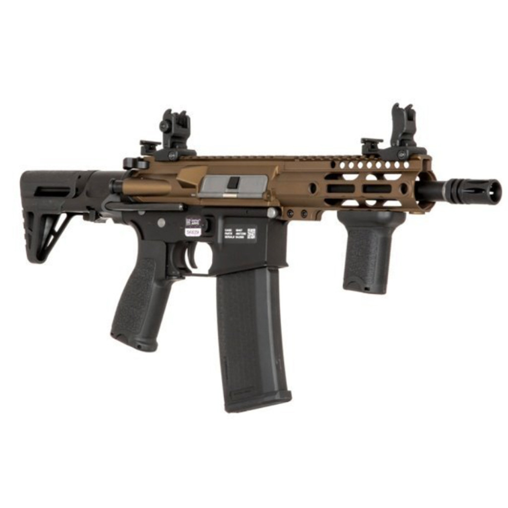 The SA-E21 PDW Edge doesn’t not only offer a robust and rigid platform externally to shoot with built but equally incorporates Specna Arms next gen high-end ORION gearbox on the inside that takes it to a whole new level. By opting for this new line you get to enjoy a whole new host of innovative features like MOSFET X-ASR module by Polish GATE, ESA™ Quick Spring Change System, 6.03mm internal precision barrel and many more. The pistol grip also has a neat design which allows you quick access to the motor without the need for tools and the top of the rifle equally features a full-length 20mm rail which is ready to take any RIS compatible sights or scopes that can be paired with the factory iron sight for some added precisions. The M-LOK handguard not only saves on weight but make the gun even more open to a bigger variety of accessories for further tuning.