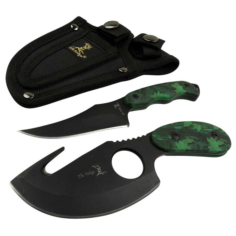 The Elk Ridge ER-300CA Hunting Knife 2 Piece Set is designed for hunters and outdoor enthusiasts seeking reliability and functionality. This set includes two versatile knives, each featuring sharp, durable blades ideal for a variety of hunting and outdoor tasks. The camo handles offer a secure and comfortable grip, while the rugged construction ensures long-lasting performance in the field. Perfect for skinning, cutting, and general utility, this set is an essential companion for your next outdoor adventure.