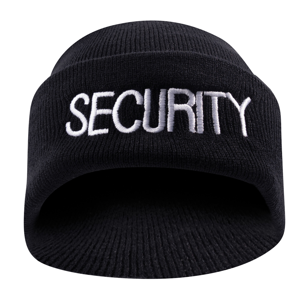 Embroidered Security Watch Caps Features 100% Acrylic Fabric With White Embroidered Lettering. These beanie style watch caps will offer warmth and protection from the extreme cold weather.