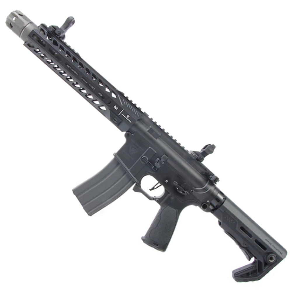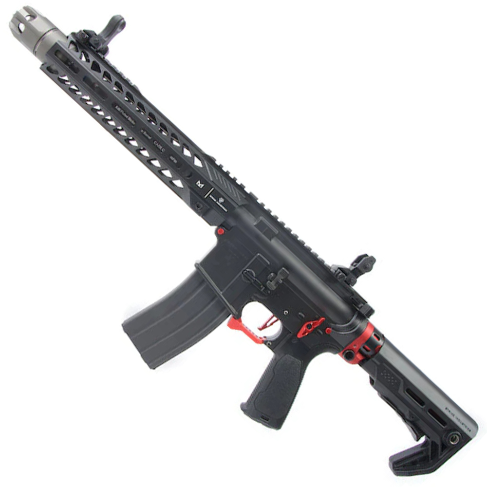 This rifle is a high-quality, well-made AEG with complete dedication to cutting edge innovation, reliability, and craftsmanship. A G&P ver2 metal gearbox on the inside opens up the rifle to a wealth of upgrade and internal replacement parts. The full suite of external parts also gives you options on how you want to run it and the ambidextrous controls are simply a great plus point for left-handed users. The rifle finishes off in a beautiful cerakoted black and red adding to its durability and increasing its resistance to the elements!