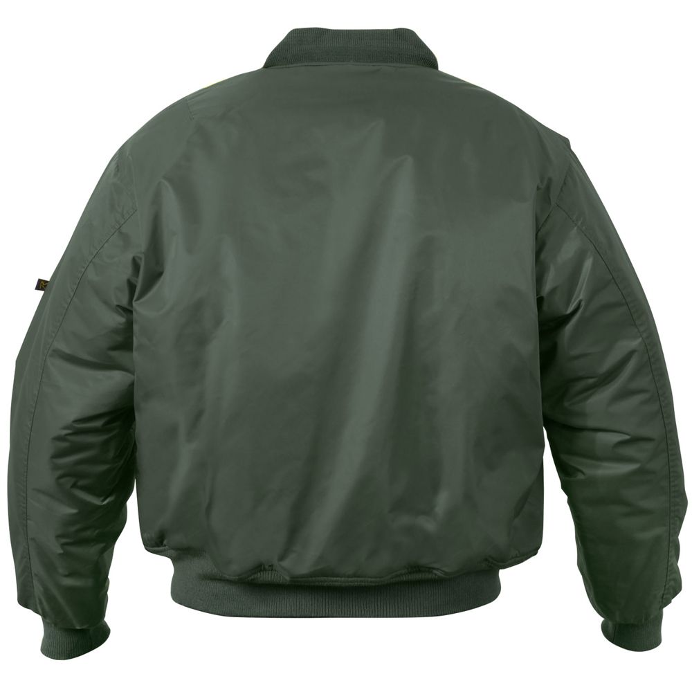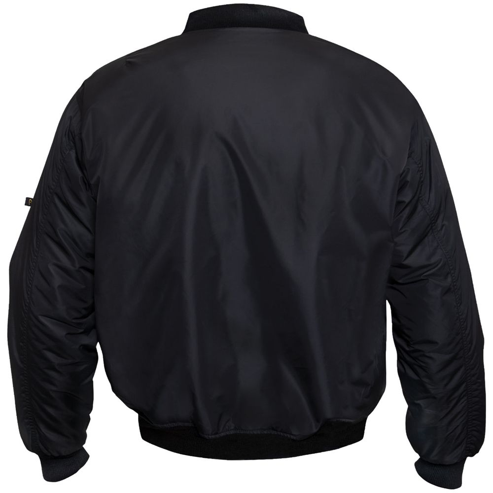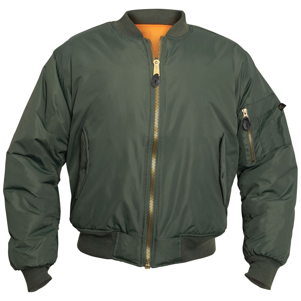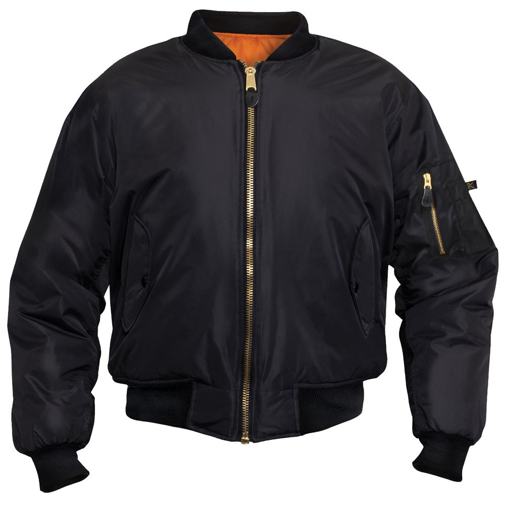 We took our classic MA-1 Flight Jacket and added an enhanced Nylon material. 100% Nylon water repellent matte finish outershell offers complete protection from the elements. This classic bomber jacket features zippered utility pockets and pen pockets on the left arm, zippered front closure with double MA-1 pull tabs and storm flap, as well as two front slash pockets on the outside and inside the jacket. A ribbed knit collar, cuffs and waistband provide optimal comfort.