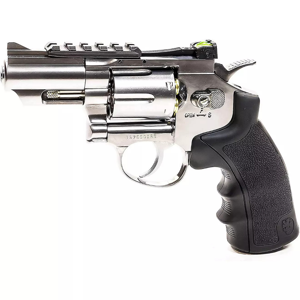 Built to look and feel like the real thing, the Barra Airguns Black Ops 357 CO2 BB Revolver is a smooth-shooting, double-action BB revolver that delivers the look and heavy feel of a true .357. A .177 caliber BB gun, this all-metal design features a contoured polymer grip with finger grooves so you can practice with the true feel of a .357 while shooting inexpensive BBs. Adjustable rear fiber optic sight and bladed front sight help improve your accuracy. The realistic revolver design features an authentic 6-shot cylinder and contains its CO2 cartridge inside the grip. Integrated top Picatinny rail allows you to add an optic or laser device.