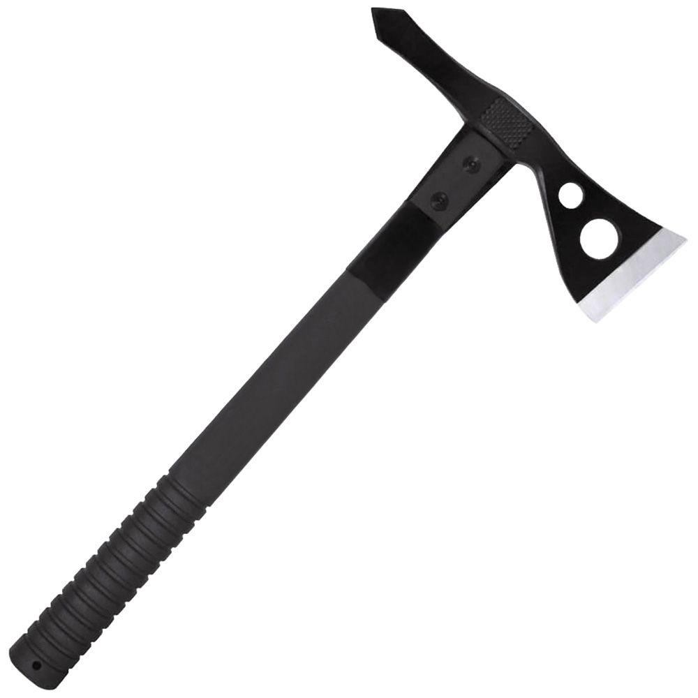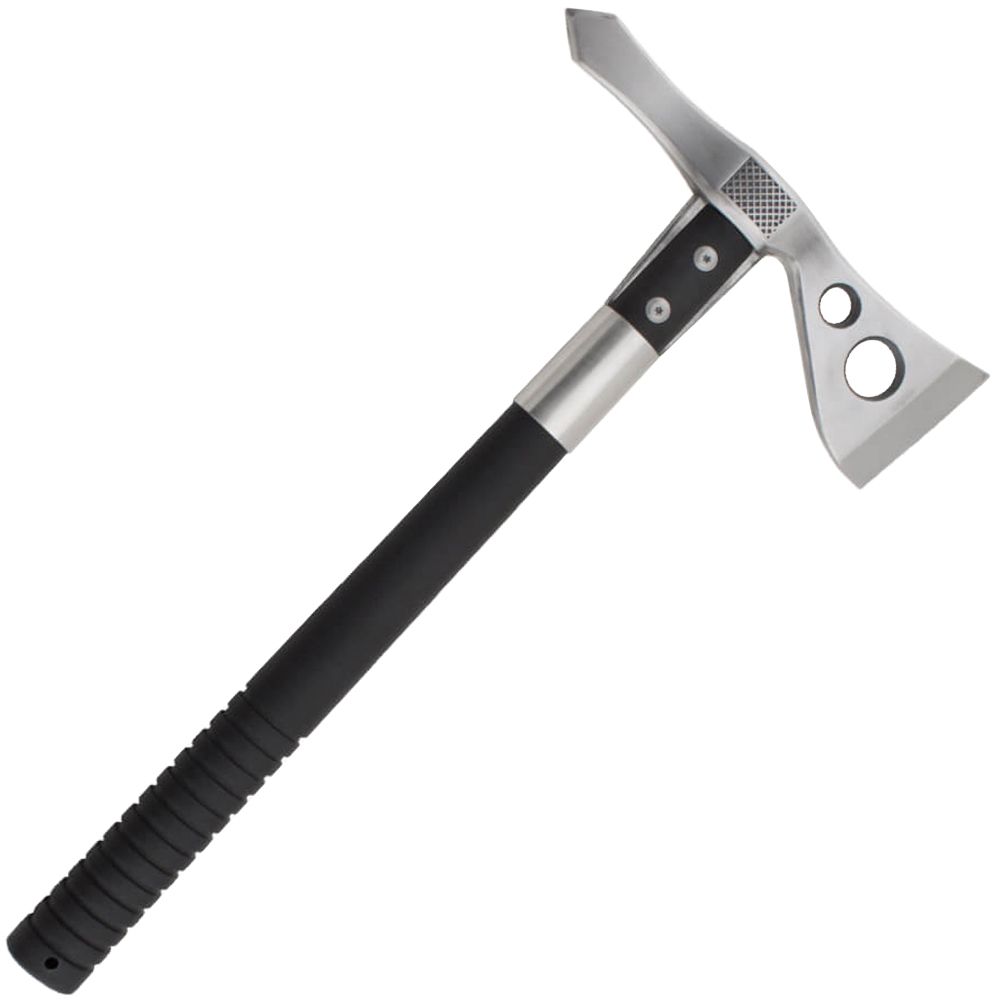 Based on the Vietnam Tomahawk, the Tactical Tomahawk is an extreme evolution of the original which was considered one of the more unusual weapons of its day. Today there is a real need for a versatile tool for breaching operations, excavation, obstacle removal, extraction, and other utility applications. The 420 stainless steel head with Hardcased coating is mounted to the fiberglass reinforced nylon handle with heavy-duty bolts and a steel ferrule for stability. Side hammer checkering insures precise placement when pounding. Carried in a nylon sheath this is a universal tool for modern man.