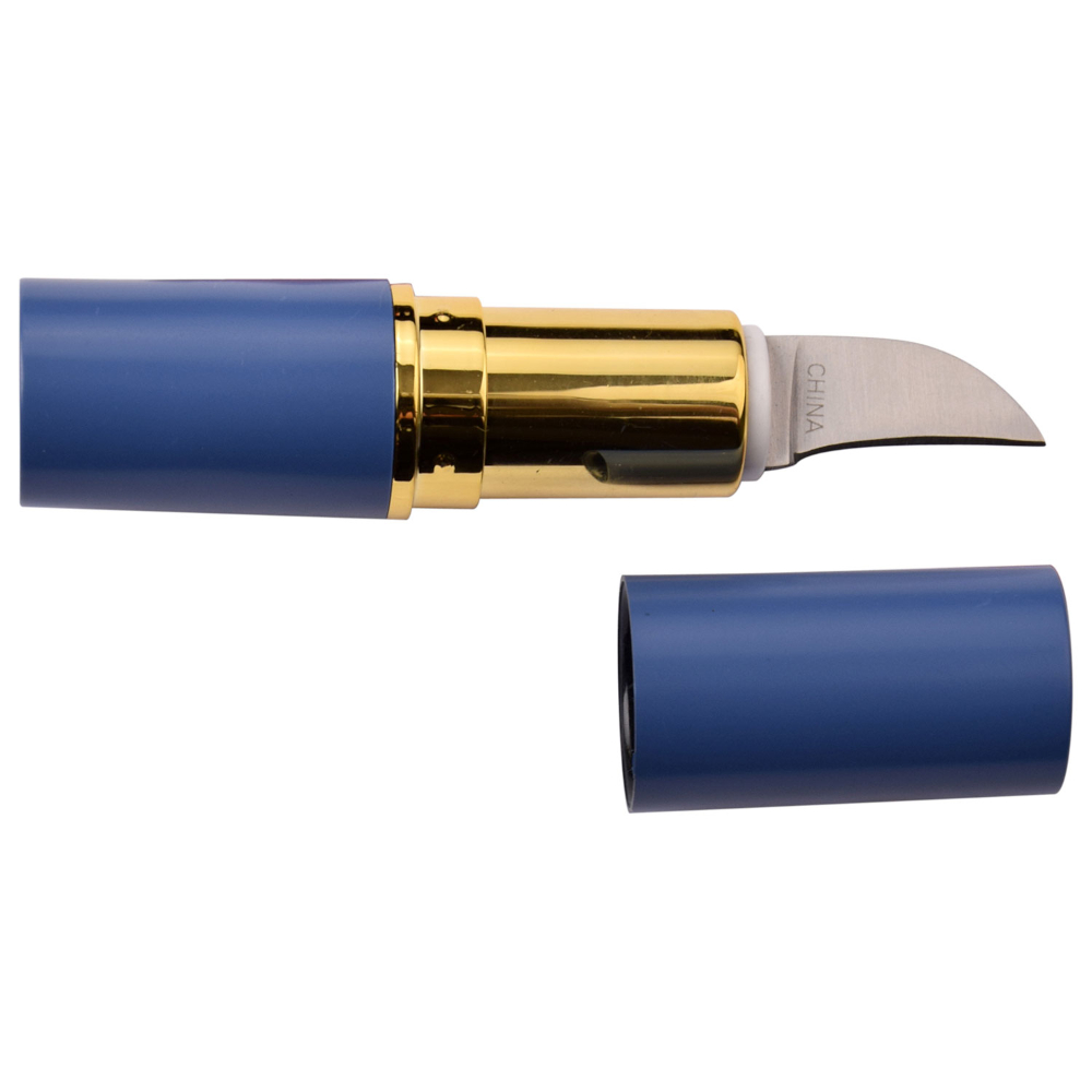 Introducing the Femme Fatale Fixed Blade Lipstick Knife, a discreet and stylish law enforcement tool designed for everyday carry. This unique knife features a 2.75" overall length with a 1" hawkbill blade, cleverly concealed within an injection-molded lipstick handle.