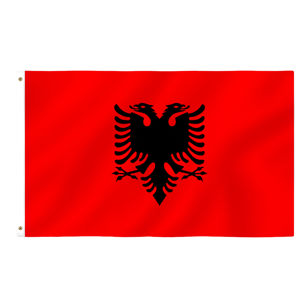 The Albania Flag is a bold and durable representation of national identity. Featuring the iconic red background and fierce black double-headed eagle, this flag is constructed from long-lasting polyester with double-stitched edges to withstand outdoor use. The two metal eyelets allow for easy hanging on flagpoles, balconies, or walls—ideal for national events, parades, or patriotic home decor.