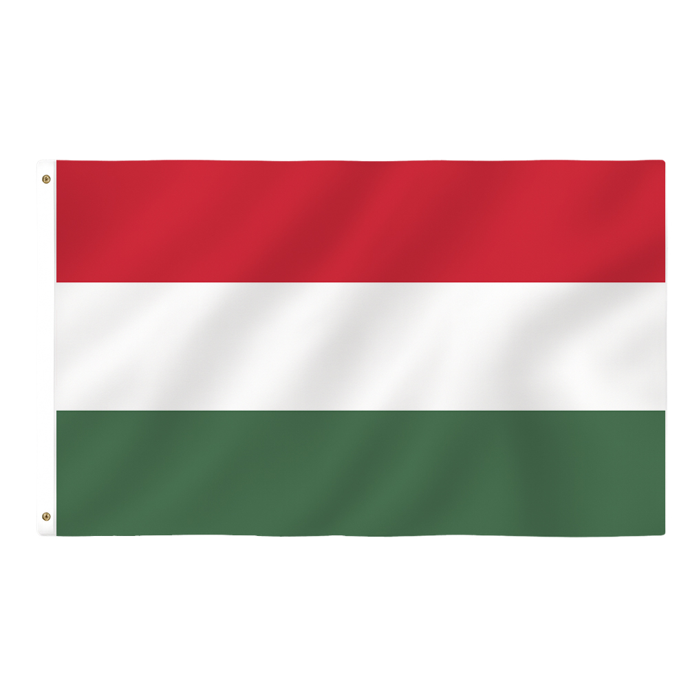 The Hungary Flag is a classic display of national pride, featuring bold red, white, and green stripes in a durable polyester design. This 3ft x 5ft flag comes reinforced with double-stitched seams and metal grommets, making it ideal for flying at home, events, or public gatherings. Its fade-resistant material ensures long-lasting color and presentation.