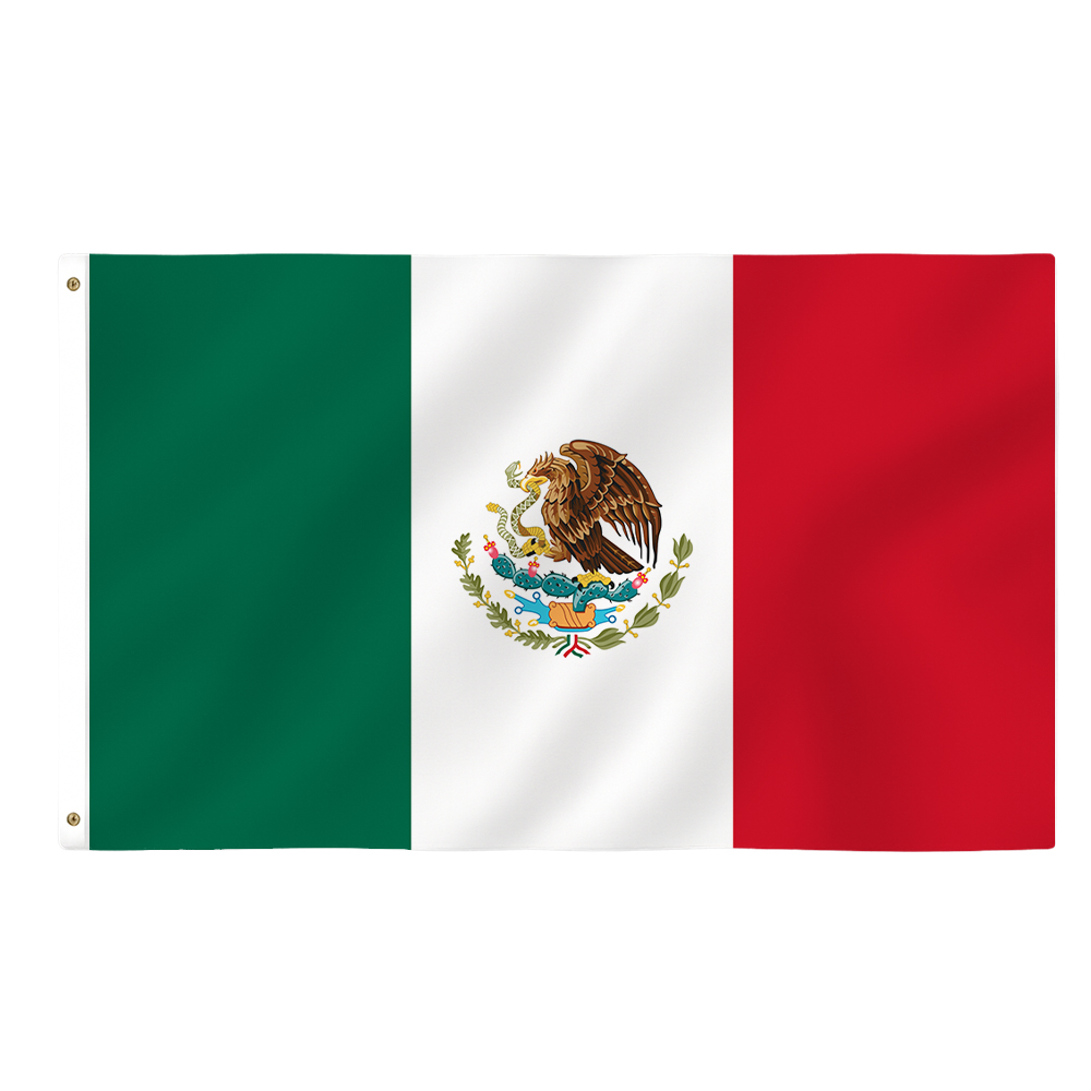 Display your heritage with the Mexico Flag, crafted from reliable polyester to ensure vibrant, lasting color. This 3ft x 5ft flag showcases the green, white, and red vertical stripes with the national coat of arms prominently featured in the center. Reinforced stitching and metal grommets allow for secure and durable use in any location, rain or shine.
