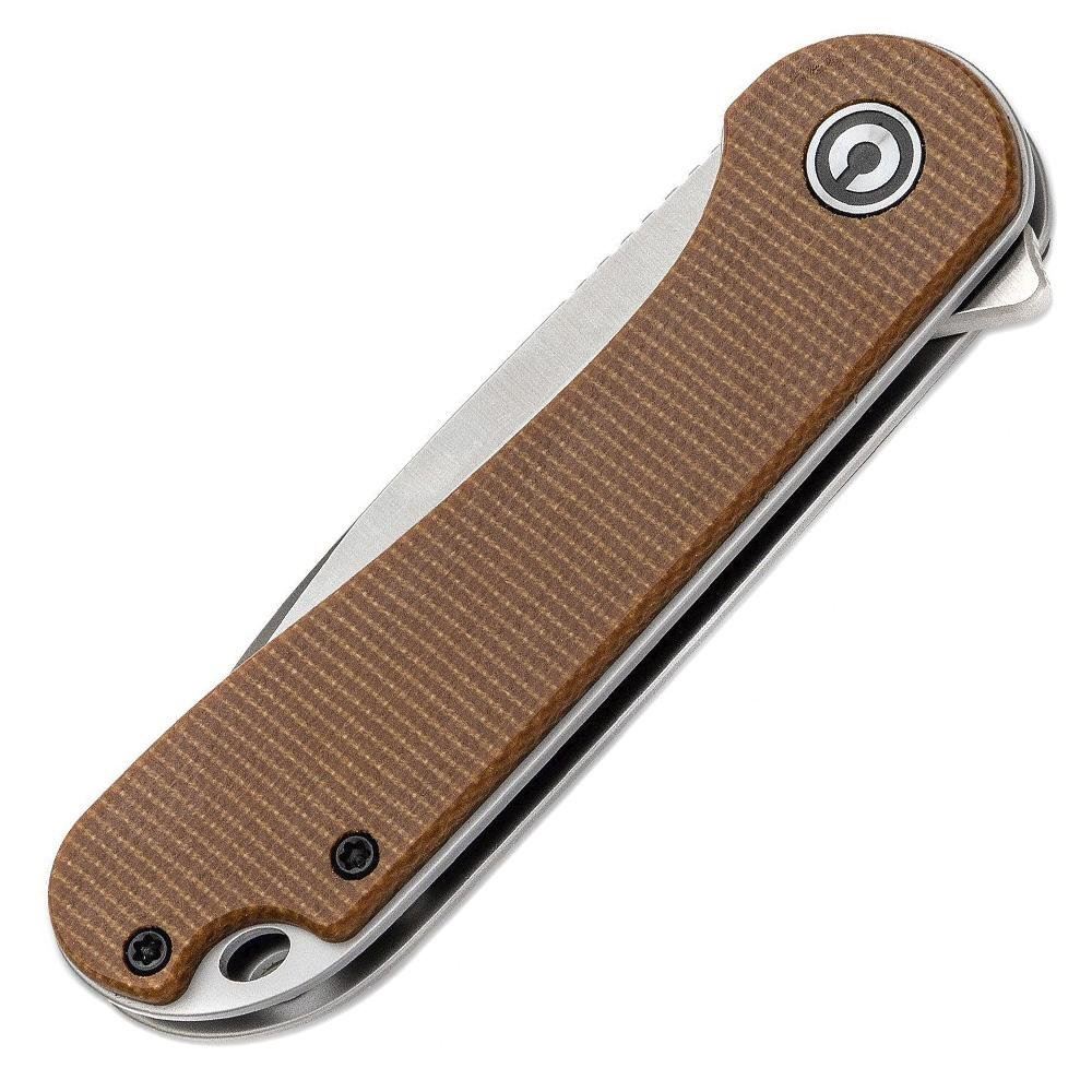 The BRKCIVC907M Elementum is a no-frills, straight down to business utility folding knife. It's a bit too compact to be used for law enforcement but many of its design features pave the way for it to be an excellent EDC blade. These include the thin, ergonomic handle that provides no hots spots during use and a very simple utilitarian design. The drop point blade transitions into an ergonomic handle that seems to melt into the hand. The brown Micarta scales make for a great aesthetic while the deep carry clip keeps the knife securely attached to your pocket. The Elementum was designed for and is capable of all-day use and at this price point, we highly recommend you put it through its paces.