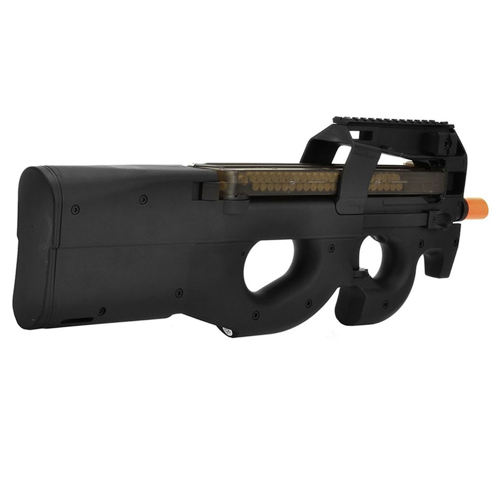 Also known as the FN Project 1990, the FN P90 is compact but powerful bullpup style SMG. This cybergun licesned AEG airsoft replica bears all the same features and marking as the real steel version. The extended inner barrel and full-metal gear box are encases in a durable polymer frame that's lightweight and agile.