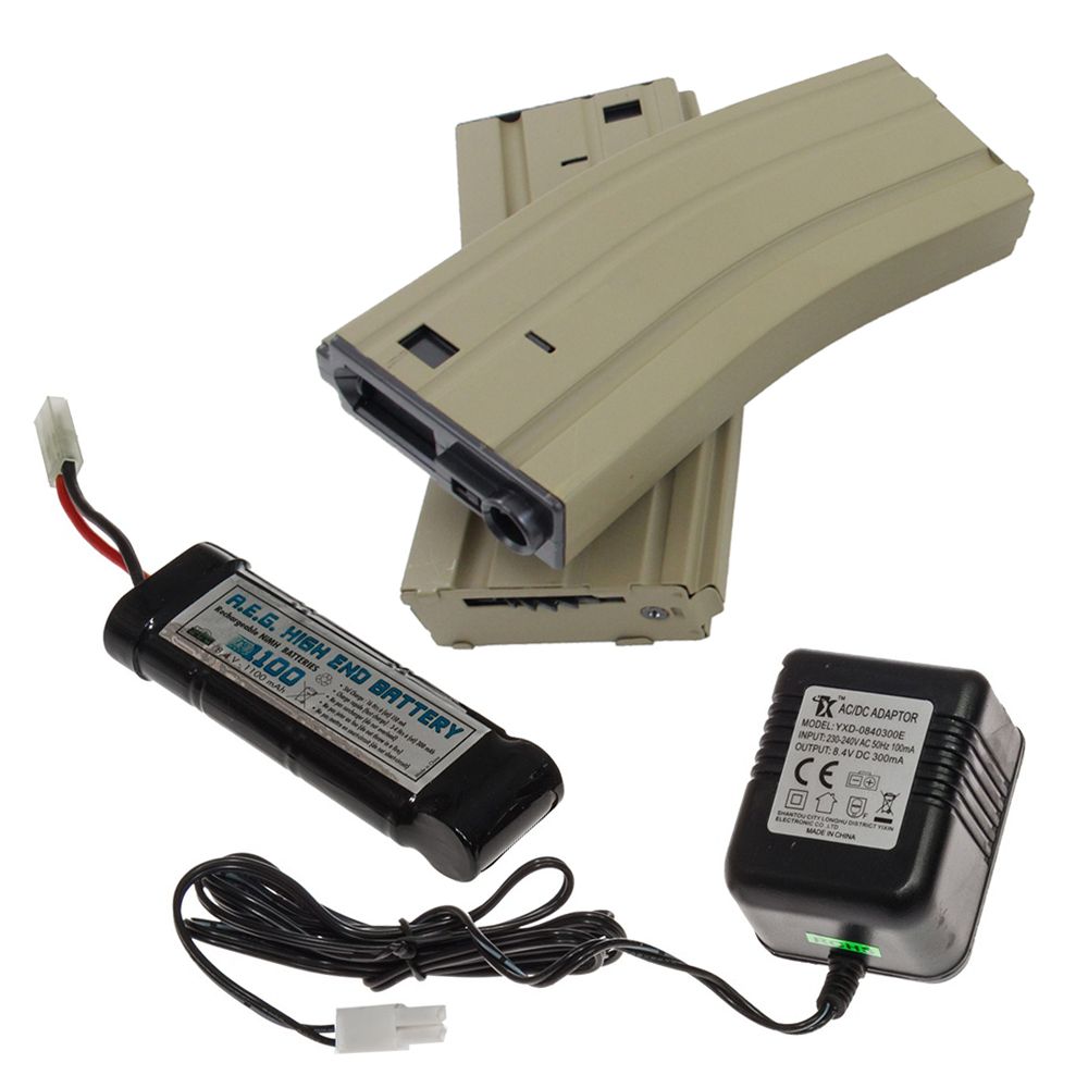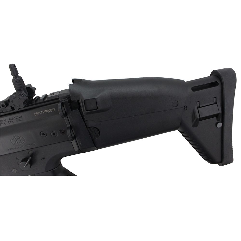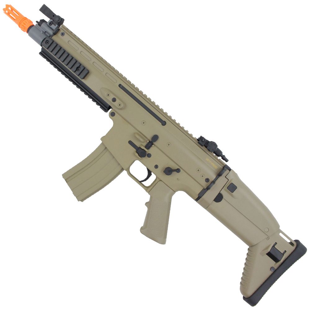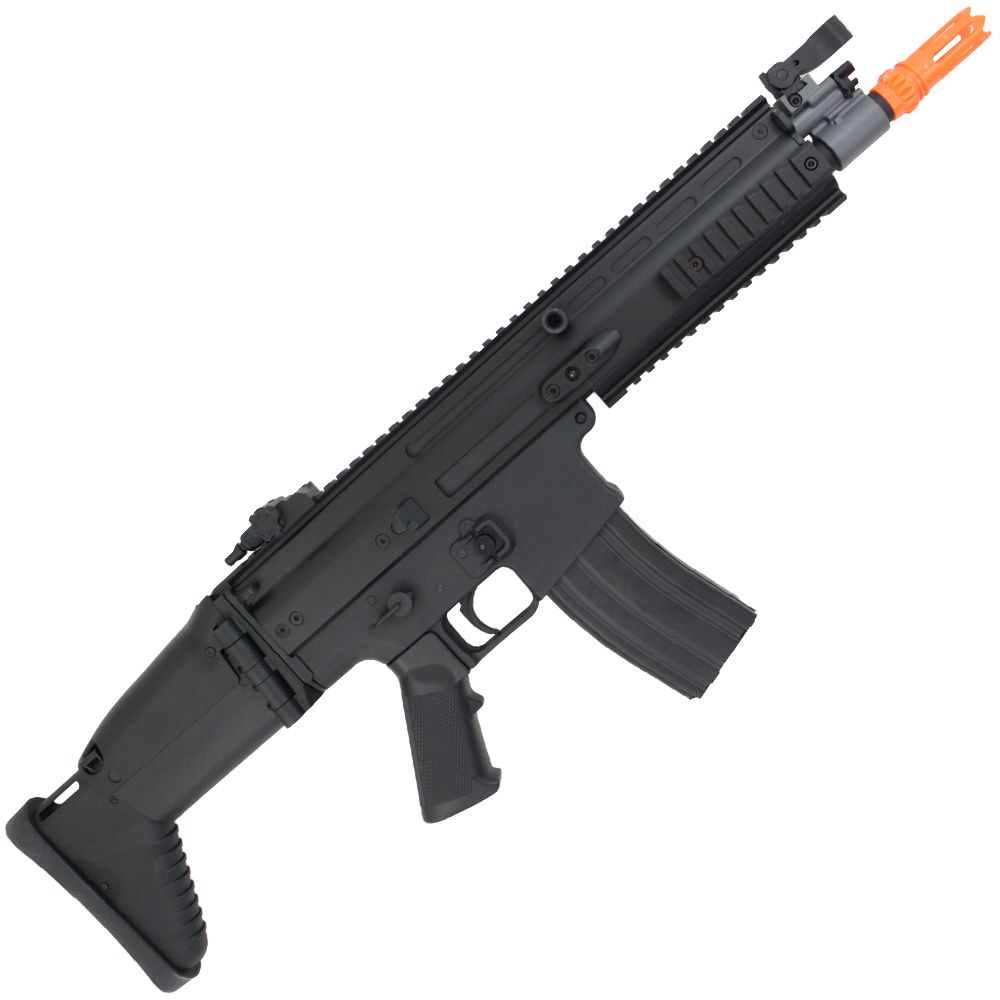 This Cybergun licensed FN Herstal SCAR-L replica AEG has a light-weight, cost-effective design that's ideal for CQB, long-range combat, and everything in between. The body, upper, and lower receiver are constructed from ABS polymer, so it won't slow you down on the battlefield. The iconic folding stock locks into place along side the rifle, so you can quickly transition from the outdoor to indoor arena. The SCAR-L is ideal for beginners and comes with a battery, charger, and two hi-cap magazines.