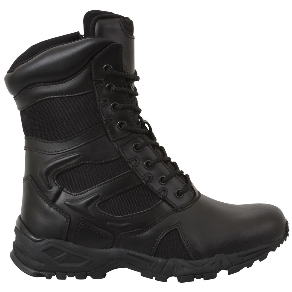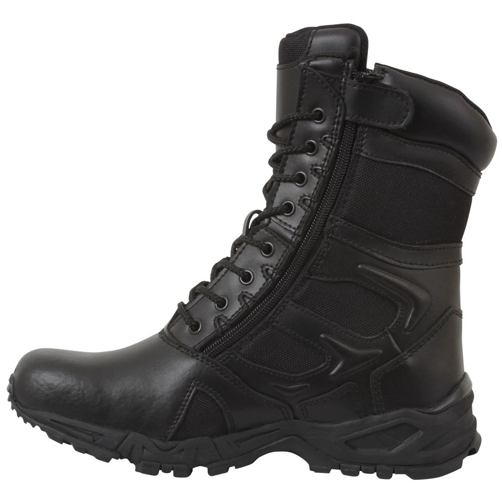 Forced Entry Deployment Boots with side zippers feature a padded leather collar, moisture wicking liner, steel shank, slip/oil resistant outsole rustproof eyelets
