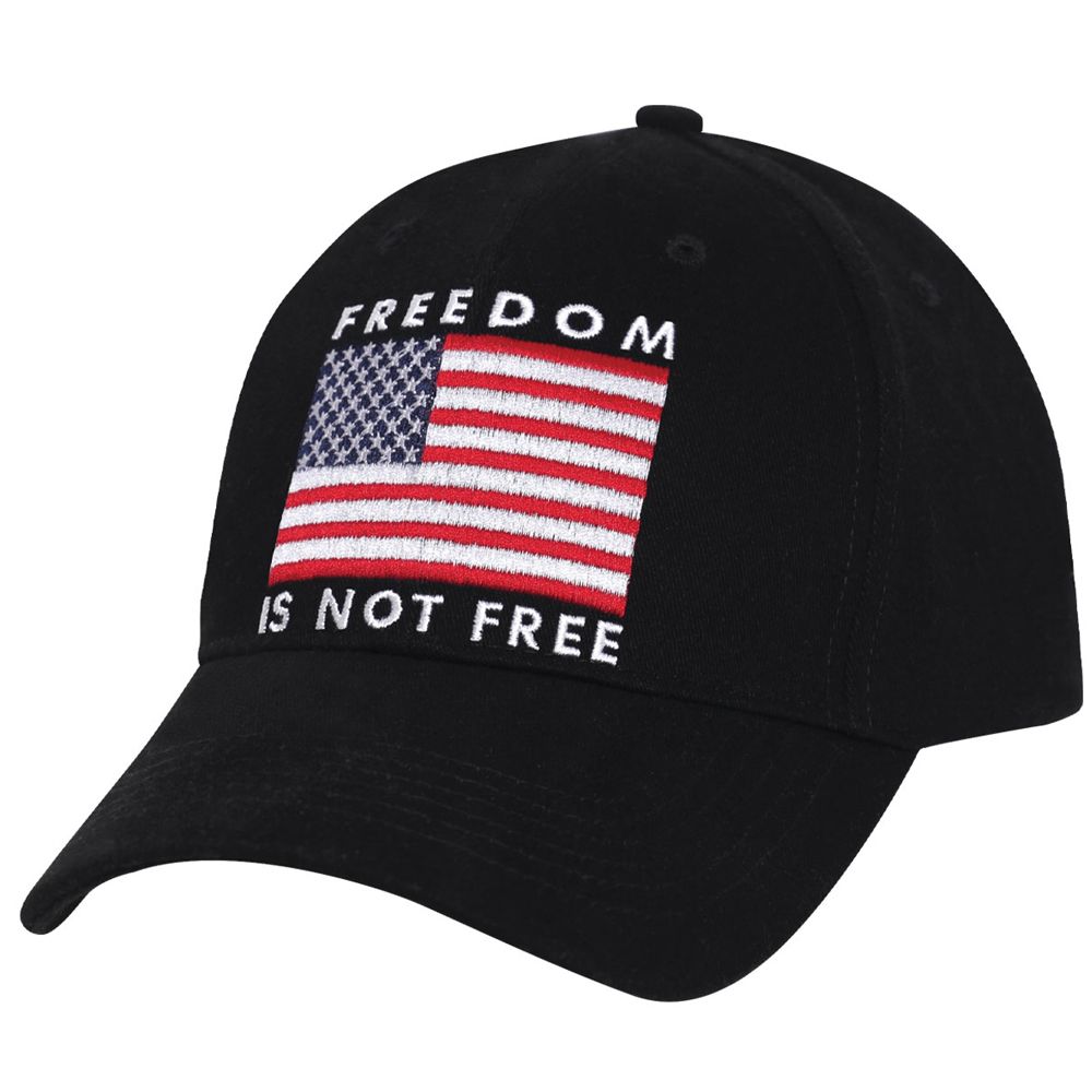 The US Flag hat features an embroidered red, white and blue American flag on the center of the buckram front panel with “Freedom” on top of the flag and “Is Not Free” on the bottom. Constructed with lightweight and durable brushed cotton twill and an internal sweatband, the American flag hat is designed to provide superior comfort and prevent sweat from going into your eyes. In addition, the 6 vents holes on top of the low profile ball cap provide optimal breathability to keep your head cool. The United States flag hat can fit most, with an adjustable hook and loop closure to loosen or tighten for the perfect fit. This red, white and blue low profile hat is great for camping, hiking, or any outdoor activity.
