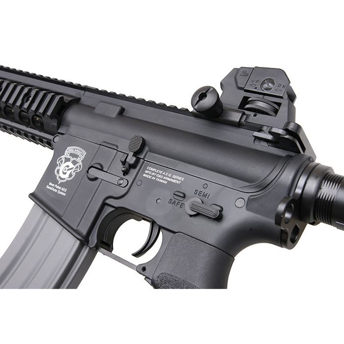 This little rifle from G&G has a lot going on. While it may be the smallest from the GR15 Raider series, it still packs the same high quality internals that have been factory-floor enhanced for serious firepower. The compact frame and barrel excel at close-encounters and speedy maneuvers. A quad rail handguard provides ample room for lasers, lights, and other indoor accessories.