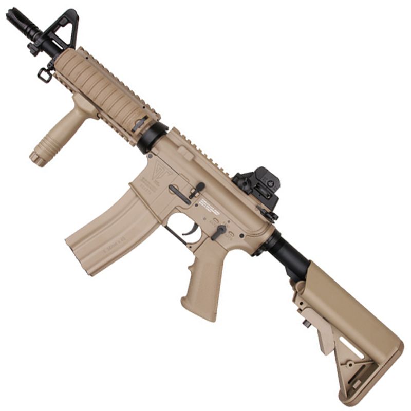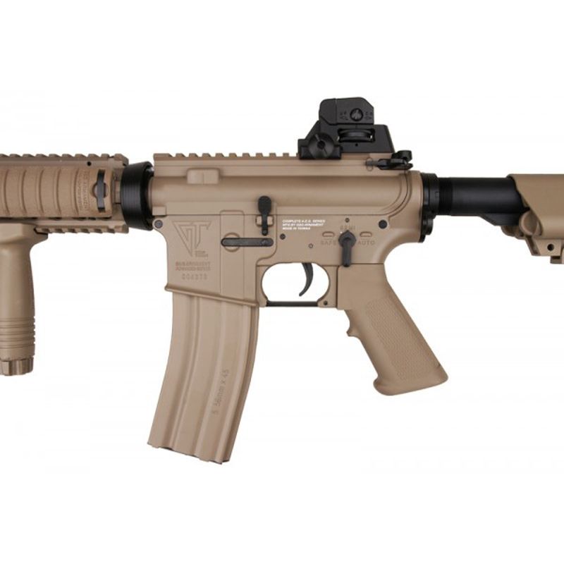 This G&G M4 style rifle is some serious heavy artillery. The V2 gearbox and M130 spring can power through the high-cap magazine with a muzzle velocity of 400 FPS. A full metal construction and 1:1 scale replica design provides a fully authentic firing experience. You can customize your setup anyway you like with the six-position crane stock and quad RIS handguard.