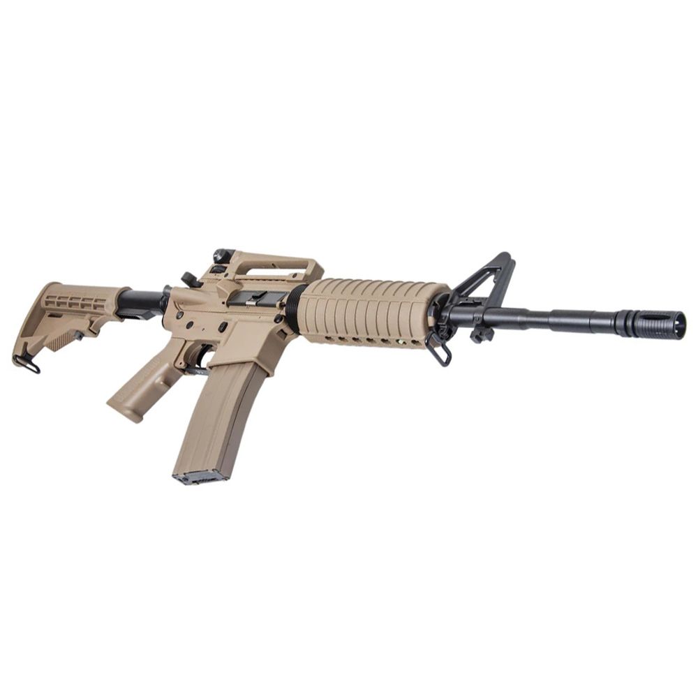 The G&G R16 Combat Machine Carbine is the ultimate rifle for close quarter combat situations. This awesome gun is a 1:1 scale replica of the standard military issue M4 rifle, and features semi/fully automatic firing, a high-capacity 450 Rd magazine, and shot velocity of 340 fps (using .20g BBs). The G&G R16 Combat Machine Carbine rifle is an excellent skirmish weapon of choice for novice and experienced airgunners alike. Experience the versatility and awesome power of this unique gun. Own your enemies and order today!