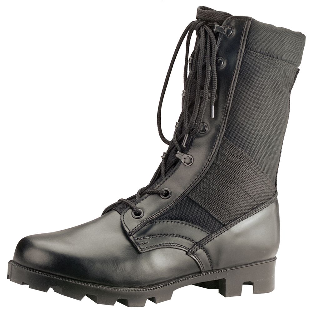 Speedlace cordura nylon jungle boot in black color is offered in GI Style. This boot comes with high quality vulcanized rubber sole. The removable cushion insole enables users to keep the boot clean and well maintained. Padded collar offers enhanced comfort and the vents ensure that there is optimum air circulation for the feet. The upper is made of a combination of leather and cordura in this jungle boot that is very popular especially due to the comfort it offers. Nylon Cordura Jungle Boot is available in a variety of convenient sizes and is sturdy enough to last for a long time.