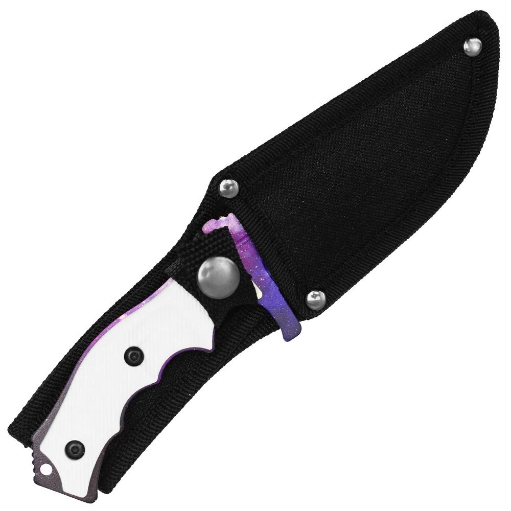 The Galaxy Huntsman Fixed Knife combines a bold design with dependable functionality. Its 4.5-inch galaxy steel blade not only enhances its appearance but also provides durability for various cutting needs.