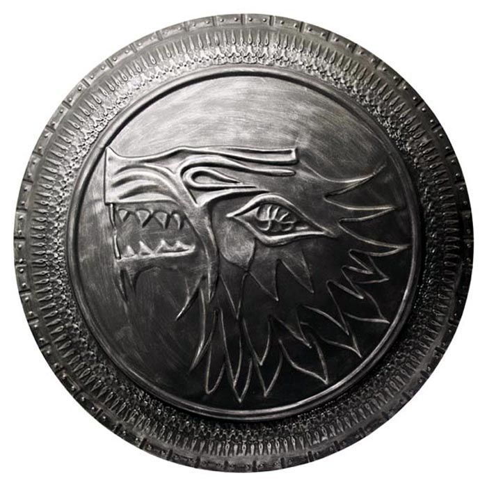 Prove your allegiance to the House Stark with the Valyrian Steel Infantry Shield. This HBO-licensed replica is an authentic recreation of the prop used in the Game of Thrones TV show. The cold-rolled-steel shield is embossed with the direwolf print, and is designed to be either mounted on its own or displayed with three crossed swords behind it. Comes with a certificate of authenticity, wall mounting screws, and a unique serial number.