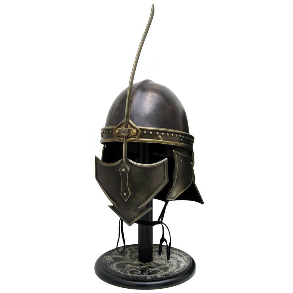 Only the most fearsome warriors can wear the spiked cap of the Unsullied. This Game of Thrones replica helm is a recreation of the original props used in the show. It is made of leather and steel, and comes with an adjustable visor. Overall weight is 2.26 kg (5 pounds).