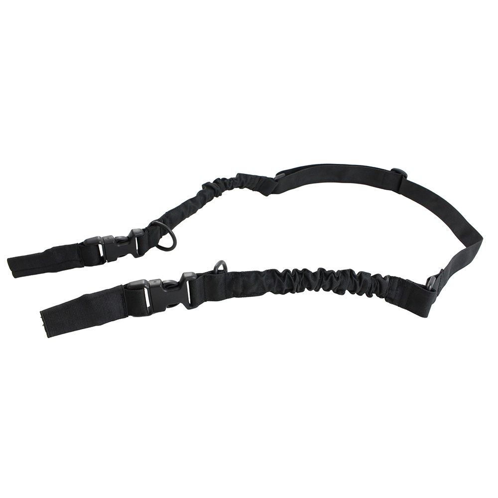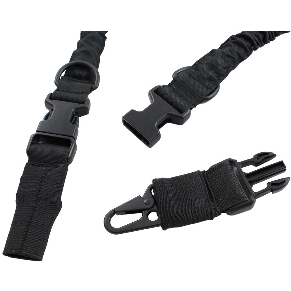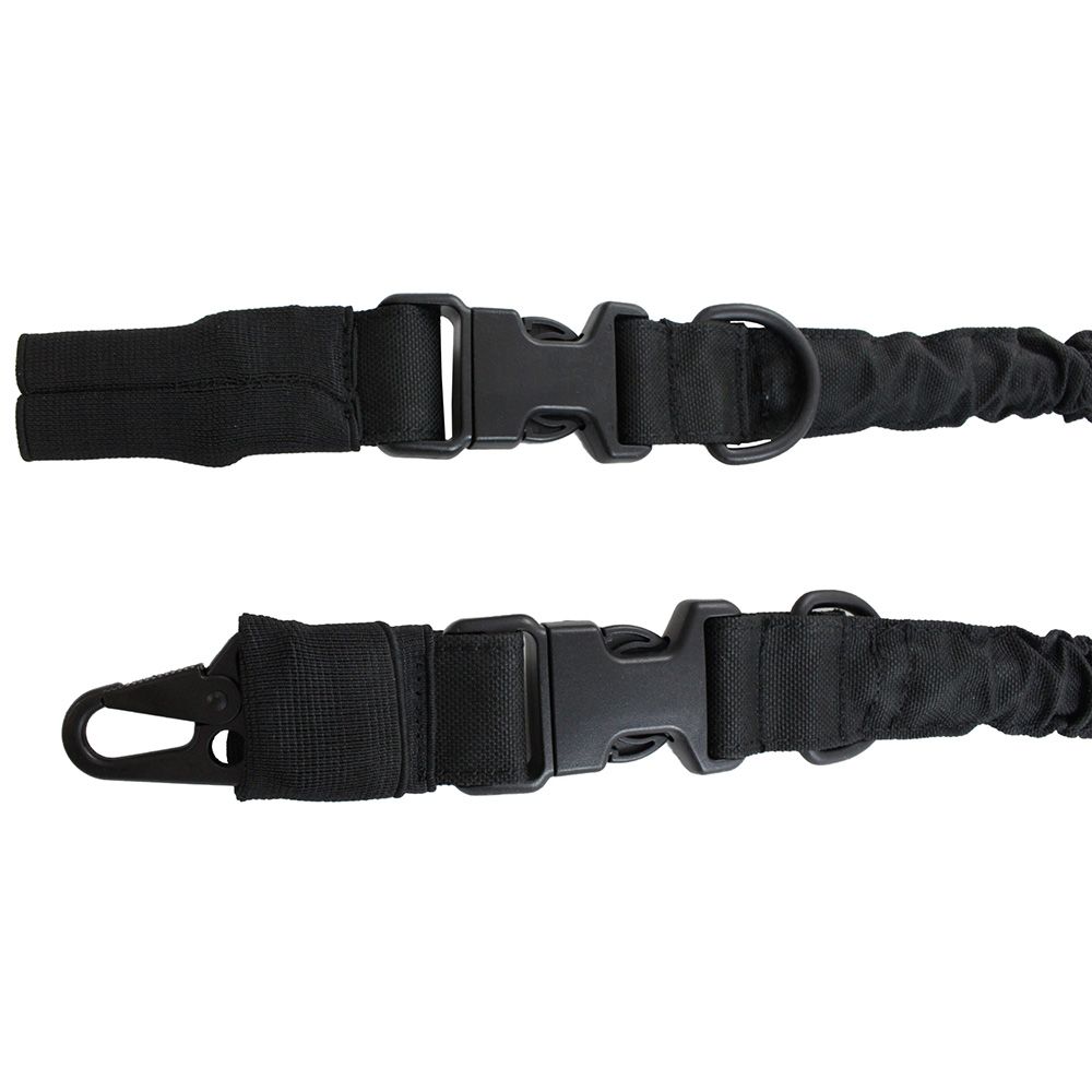 Outfit your rifle with this one point dual-bungee sling from Gear Stock. The single point HK hook attachment keeps your firearm in the ready position without limiting your range of movement. Constructed from 1.25" nylon webbing with an inner bungee cords and quick-release buckle.