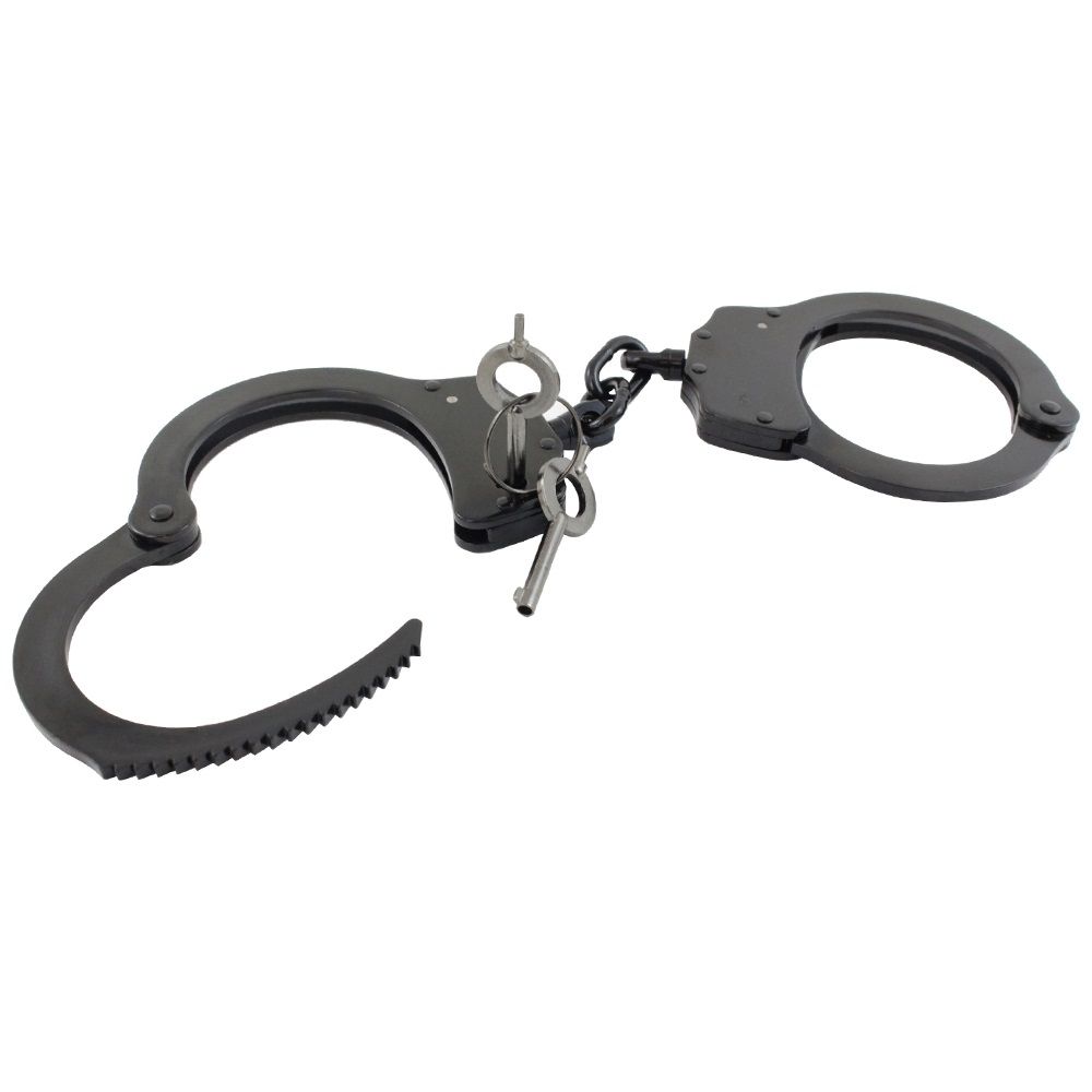 These Gear Stock handcuffs are made from tough carbon steel and provide professional-grade durability and rigidity. They are equipped with heat treated internal lockworks making them extremely difficult to break open without a key. Ideal for police, law enforcement, and home security. The package includes two keys for the univeral lock.