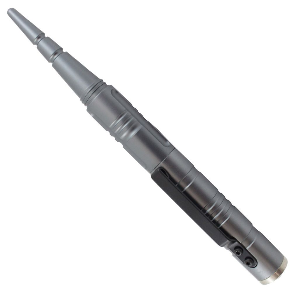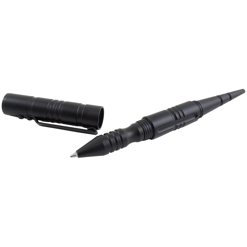 The Gear Stock Tactical Pen writes smooth and acts tough. With a solid aluminum frame and blunt pointed tip, it doubles as a kubaton for law enforcement. The glass breaker tip also comes in handy for emergency situations, making this an incredibly multi-functional tool. The screw-on cap can be attached at either end to match your needs. Available in two styles with a black or blue finish.