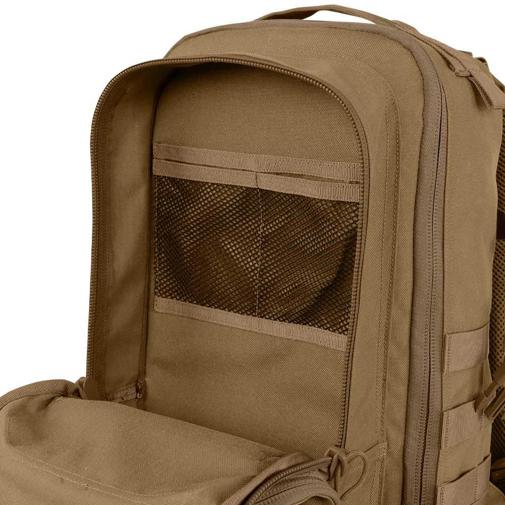 The small assault pack is easy to wear and includes premium padded shoulder straps, a sternum strap, and an adjustable waist belt for maximum support, no matter the size of the wearer. A generously padded back and spacer mesh ensures a comfortable fit during long treks or patrols. The Compact Assault Pack is available in your choice of in Olive Drab (001), Black (002), Tan (003), or Coyote Brown (498), so you can match your gear to your apparel or other gear.