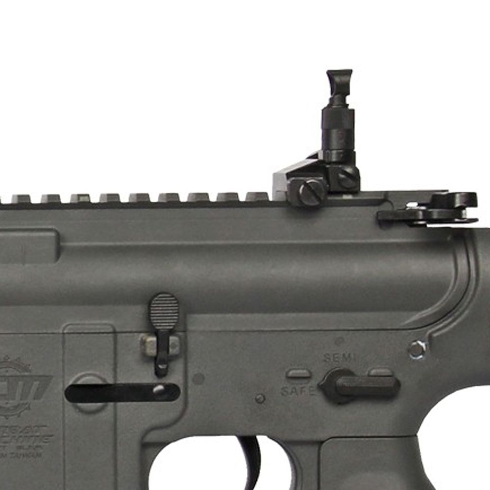 CM15 assault rifle replica by G&G made as a part of the Combat Machine project whose aim is to deliver high-quality replicas at a price that may be considered economical. Combat Machine replicas are characteristic for their highest, distinctive of G&G products, craftsmanship, reliability and high quality of materials used. The main factor that allows reducing the price is the use of a receiver made of high-quality polymer instead of metal. It is also important to note that the receiver was made of fiberglass reinforced polymer. The replica features an SF stock with a rubber stock pad. Inside the stock is room for a battery. The stock is adjustable, which allows for the customization of the replica’s length to the body type and preferences of the User. The replica features a RIS 22 mm rail on top and a KeyMod handguard. The replica also features a gearbox V2 based on 8 mm bearings, which allows for achieving a muzzle velocity of ~320 FPS straight out of the box. This and the implementation of a 463 mm long outer barrel make this replica ideal for middle-ranged activities. Inside is a sealed pneumatic system, equipped with a high-quality chamber and HU bucking.