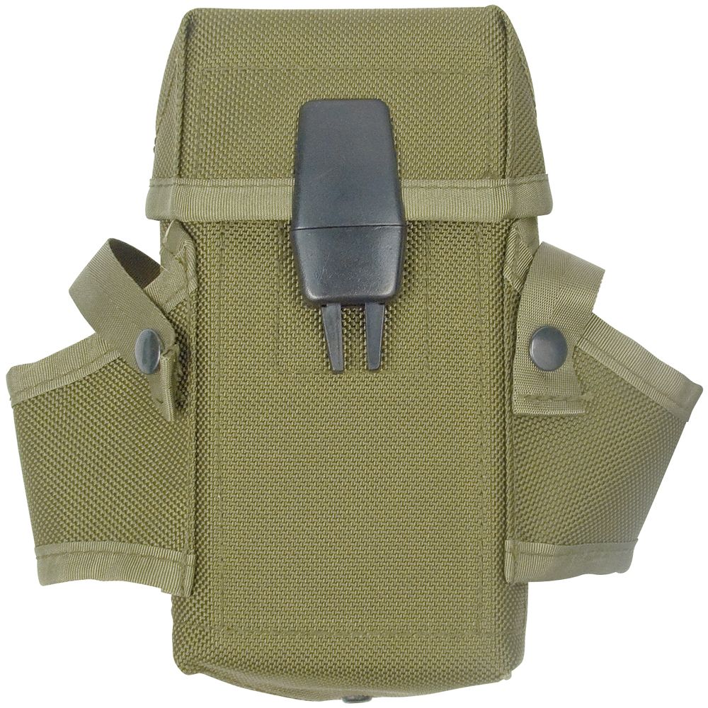 Genuine G.I. Used Olive Drab M-16 Clip Pouches is nylon material. With belt clips. Neat features, durable, and lightweight. Used but in great condition. Official military m-16 clip pouch. Olive Drab M-16 used clip pouch.